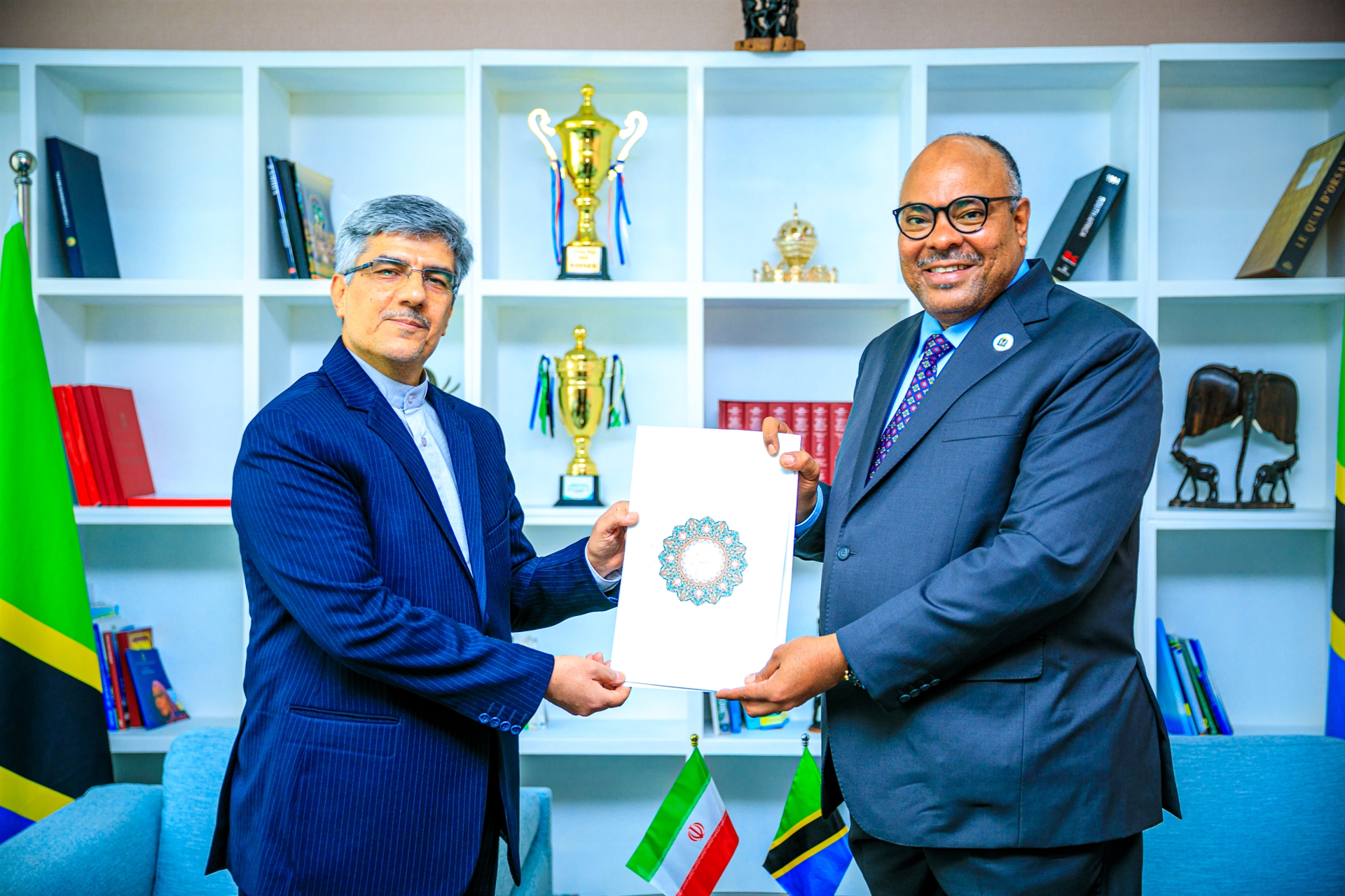 جناب آقای محمد جواد همت پناه؛ سفیر جدید جمهوری اسلامی ایران در دارالسلام- تانزانیا رونوشت استوار نامه خود را به جناب آقای محمود ثابت کمبو؛ وزیر امور خارجه جمهوری متحده تانزانیا تقدیم نمود. در این دیدار زمینههای مختلف همکاری اعم از اقتصادی، سیاسی، فرهنگی و ... مورد بحث و بررسی قرار گرفت. وزیر امور خارجه تانزانیا ضمن اشاره به اشتراکات تاریخی ایران و تانزانیا از آمادگی کشورش برای توسعه هرچه بیشتر روابط سخن گفت.